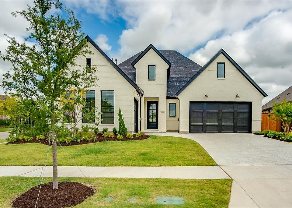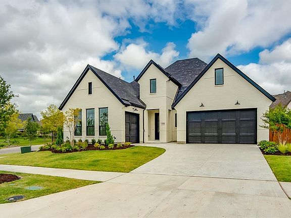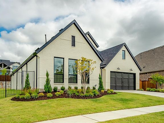 Modern 1 story design with painted brick, 3 bedrooms, 3 full baths (all private), 1 powder bath, media, large flex room with wondows and storage closet, 1 large dining area, covered outdoor living and 3-car split garage situated on an interior oversized corner pool sized lot adjacent to green space. Home features lavish primary bath with freestanding tub, large family room with ceiling beam, large walk-in pantry, kitchen cabinets to the ceiling, WOLF 48' DUAL FUEL RANGE with 6 BURNERS, pot filler, huge island with storage, gorgeous wood floors and so much more. Available NOW!