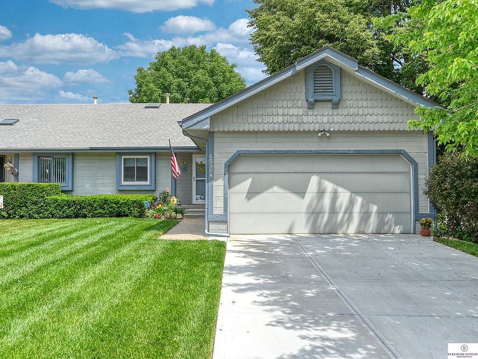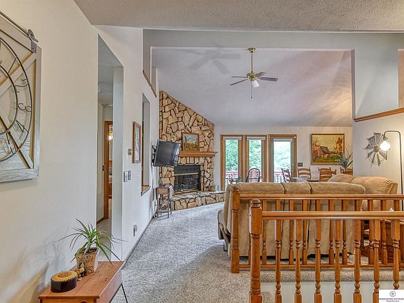 Don't let this rare opportunity pass by!! This Millard Townhome is looking for its new owner! In this 2 bed, 2 bath home you will find updates that include fresh interior pant, new carpet, custom blinds, new quartz vanity tops in both bathrooms, vaulted ceilings throughout the main floor, newer driveway & freshly stained deck. The living room with fireplace offers deck access where you can sit and enjoy your morning cup of coffee under the mature shade trees. The kitchen features stainless steel appliances and additional dining space. Primary bedroom has a walk in closet and a ¾ bath with shower. Lots of potential with the unfinished basement which includes a bath rough-in & storage room. Other items to note - Transferable home warranty with two years left through AHW Home Warranty, all appliances stay including fridge, washer & dryer, fenced yard with sprinkler system, close to schools, park, pharmacy & dining areas.