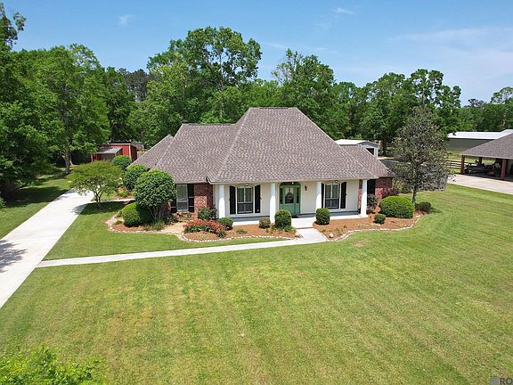 Located in WALKER, this is not just your new home...this is your paradise. With almost 3,000 sq ft, 4 bedrooms, a huge bonus room, 20x30 workshop, RV PORT, beautiful gunite pool with waterfall and slide, outdoor kitchen with full bath and bunkhouse with laundry room, pond with color changing fountain, AND a gazebo with fireplace...even ALL THAT does not scratch the surface! You will be greeted by a roomy foyer as you pass the first bedroom and enter into the living room with 14' ceiling, wood burning fireplace and windows overlooking the large back patio, then through the roomy kitchen and dining area with brick paver flooring, granite countertops and custom built cabinets continuing to the huge bonus room with bar, sink and dining area. Just beyond the bonus room you will find the garage and additional bay area that has been converted into a beautiful bedroom/hobby room. To the right of the foyer will be 3 additional guest bedrooms with large closets as well as guest bathroom and further down the hall you will be greeted by a large primary bedroom and bathroom with double vanities, new custom walk in shower, soaker tub and large 2 walk in closets. And your outdoor escape is truly unique. As you pass the workshop you will enter the iron gates to your paradise offering a large elegantly shaped gunite pool with unique cabin style waterfall and slide and at the entrance of the pool, an adjustable bubble feature. The AMAZING outdoor kitchen is where you will want to entertain and this kitchen comes with separate bathroom and a beautiful private outdoor shower as well as a large bedroom big enough to sleep 6 with its own laundry room. During your short stroll to the bass and bream stocked pond with color changing fountain, you will pass the gazebo with brick fireplace. This home which has a 1 year old roof and has never flooded is located in a one street neighborhood with recorded restrictions to protect your homes value as well a your quality of life.
