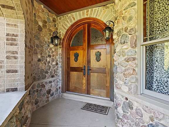 Immaculate 5 bedroom home featuring high-end finishes throughout the great open floor plan and full finished walkout basement situated on nearly 12 acres of beautifully maintained grounds with sweeping views. The grand entryway is highlighted by a spacious wrap-around brick and stone porch, and custom curved French wooden doors with brass knockers. Gleaming hardwood flooring with inlays and a curved staircase with iron spindles and wood railing greet you and welcome you into the 2-story family room with gas start fireplace and the expertly designed chef's kitchen. This impressive space features a copper island with sink and storage, dual oven, huge refrigerator, high-end oven and copper hood, finished off with a tin backsplash. The family room offers access to a deck with stunning views, a hot tub for added relaxation, and an outdoor fireplace. Back inside you have the option of a convenient breakfast nook or formal dining room to entertain guests. The main level also includes a home office and mud room, plus the vaulted primary bedroom with en-suite bathroom and 2 walk-in closets. On the massive lower level there is plenty of room for residents and guests alike - including a large rec room, game room, play room, and sunroom, in addition to extra storage space, a workshop, and walk-out to tons of outdoor space to play and relax. The large patio is surrounded by terraced landscaping and a water feature. The second level offers a spacious loft overlooking the family room, three bedrooms - 2 of which offer walk-in closets, and an inviting media room currently designed for serious music listening. With a country estate feel, you're still nearby to the historic downtown Woodstock square, shopping, dining, and the Metra train. This one-of-a-kind home is ready and waiting for its new owners! Please see Additional docs for list of Features!