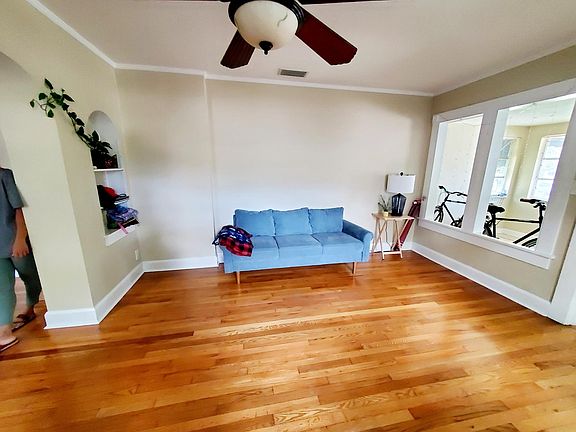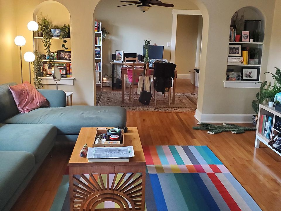 It has original wood + tile floors, granite countertops, and a charming living room archway. We love it so much that we nearly moved in ourselves.