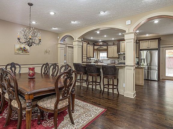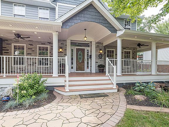 This beautiful 2 story is located in a family-friendly neighborhood, on a quiet street, close to Veterans Memorial Park, Splash Landing Pool, and Cumberland Square. The main level has hardwood floors, formal dining room, half bath, and features a family room with a fireplace. The home also has a security system with cameras and loads of extra features, including custom pull-outs in the foyer and kitchen, LED lights throughout, and tankless water heater. The kitchen features hardwood floors, granite counters, tiled backsplash, stainless steel appliances including a 48" gas stove with double oven, pantry, breakfast nook and breakfast bar. Appliances stay with the home. The master bedroom suite is located on the upper level and features hardwood floors, separate sitting area and 2 walk-in closets. The attached master bath includes tile floors, granite counters, a free-standing soaker tub and over-sized tiled shower. The Upper level also includes 1 bedroom with an attached full bathroom, and 2 additional bedrooms, 1 additional full bath, and a spacious laundry room. The finished walkout lower level features a wood-burning stove, full kitchen, theater room and a full bath with oversized tiled shower and sauna room. The heated garage includes cabinetry and counters along with an epoxy-finished floor. Outside you'll find a gorgeous front porch and large backyard stone patio with a 16x26 covered pergola, a gazebo and jacuzzi, and an outdoor kitchen with a full wood privacy fence and mature trees. Exterior features include a lawn irrigation system, two waterfalls (one in front yard/one in backyard), and a storage shed.