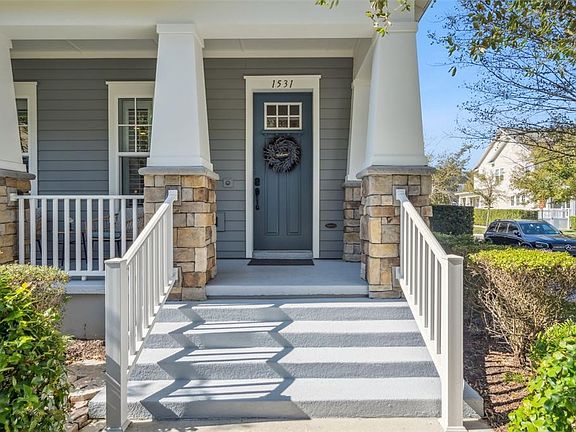 Step into timeless elegance with this enchanting corner-lot residence, perfectly poised beside a charming mews. From the very first glance, the picturesque façade and inviting front porch set the stage for a home that feels both refined and romantic—a true escape from the ordinary. Inside, light pours into the open concept living and dining areas, illuminating graceful sightlines and creating a warm, ethereal glow throughout. Every detail has been thoughtfully curated, from the bespoke light fixtures to the hand-painted mirrors that lend each room an air of artistry and sophistication. At the heart of the home lies a chef’s French Provincial kitchen—a masterful blend of form and function. Quartz countertops, premium stainless-steel appliances, and exquisite design selections come together to create a culinary space as beautiful as it is practical. Just beyond, glass doors open to a private, fully fenced English garden, alive with color and fragrance. Whether enjoying morning coffee among the blooms or unwinding beneath the stars, this tranquil oasis offers a perfect balance of elegance and serenity. Upstairs, a stately wood and iron staircase leads to a bright, airy loft—a flexible retreat ideal for lounging or quiet reflection. Each guest bedroom is generously proportioned, featuring walk-in closets and access to a beautifully appointed bath with a soaking tub and expansive vanity. The primary suite is a private sanctuary designed for comfort and indulgence. A gracious sitting area and tray ceiling enhance its sense of grandeur, while the spa-inspired ensuite features a walk-in shower with rainfall fixtures, pebble flooring, and an impressive walk-in closet—an ideal retreat for unwinding in luxury. Additional highlights include a convenient powder room on the main level, an upstairs laundry with built-in cabinetry, and an oversized garage with ample storage. Fine craftsmanship is evident throughout, with elegant crown molding, designer flooring, plantation shutters, and a freshly painted exterior completing the home’s impeccable presentation. Beyond the property, the magic of Celebration awaits. Conceived by the Walt Disney Company as the embodiment of small-town perfection, Celebration offers a lifestyle unlike any other—where tree-lined streets, over 26 miles of walking/biking trails, and vibrant community events coexist with upscale dining, boutique shopping, and charming seasonal festivals. The ideal location provides effortless access to Orlando’s world-renowned attractions while maintaining an atmosphere of peace and timeless beauty.