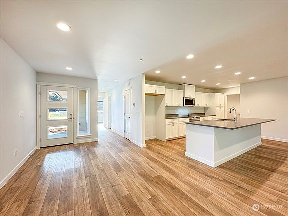 Discover Milwaukee Trails, the latest housing development nestled next to the Olympic Discovery Trail, a fully paved path that stretches to the Elwha River, favored for dog walking, cycling, and more. This single-level contemporary Townhome boasts luxury vinyl plank flooring, quartz countertops, LED lighting, white shaker cabinets with soft-close doors, and a covered back deck. The home is equipped with two ductless heat pumps for efficient heating and cooling. A one-year builder's warranty is included. Located on a corner lot adjacent and across from open space lots and with the Discovery Trail adjacent to the backyard with trees as a buffer. Estimated completion date is the end of December.