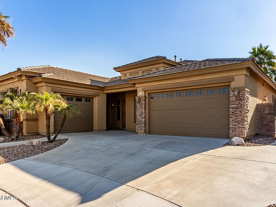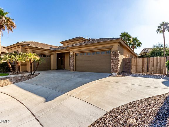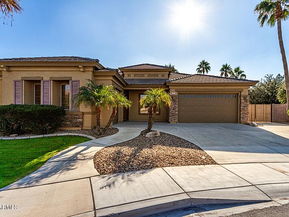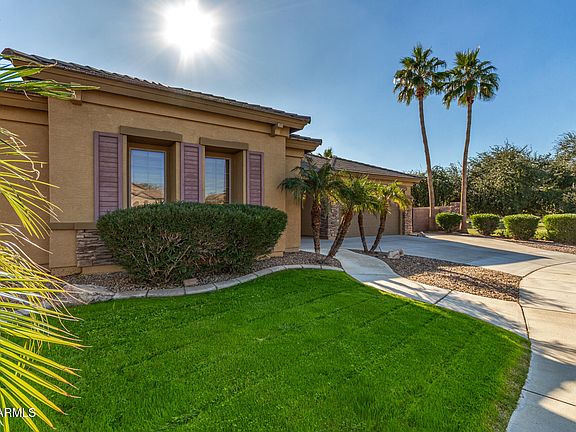 Stunning home located in one of Chandler's most sought-after communities! This spacious 3,996SF residence features six bedrooms, a finished basement that includes a custom wet bar, two bedrooms, and a full bath, and a backyard built for entertaining, complete with a sparkling pool with waterfall and slide, and a built-in BBQ. The kitchen boasts granite countertops and breakfast bar, and the wood plantation shutters throughout the home add timeless style. Sitting on a large corner lot next to a greenbelt, this property also offers convenient access to top-rated schools, major freeways, shopping, dining, and entertainment.