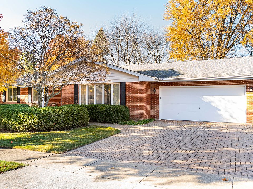 This 4 bedroom spacious, almost 2300 sq.ft., all brick ranch home is in an established area with mature trees and sidewalks to take long leisurely walks through this very popular neighborhood. This home has a great curb appeal with red brick, black side window shutters, and white trim around windows. The driveway and path to the front door have been upgraded with brick-like pavers. This is one-owner home, has been well cared for through the years, and is move-in ready for the new owners. There is a spacious living room and adjacent dining area. The kitchen has beautiful hard surface Corian countertops, plenty of cabinet space, a closet pantry, and a large breakfast area beautiful hardwood floor flooring. Likewise, the main bedroom and a second bedroom also have hardwood floors. There is a bright family room/sunroom with oversized windows and a brick fireplace. There is a flexible floor plan that offers a versatile room just off the kitchen that could be a family bedroom, guest room or is perfect for a private working at home office that even has a partial wall of built-in bookcases. The main bedroom includes an adjacent full private bathroom. On of the bedrooms has a full wall of built in shelving. There is a stackable washer and dryer conveniently located on the main floor and an additional dryer in the basement. There is a spacious basement with a partially finished area and a separate workshop area. In the summer you can enjoy the paver patio.