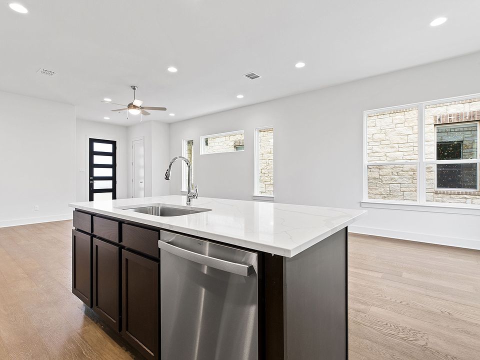 This gorgeous, move-in-ready brand new home boasts an open floor plan with beautiful hardwood flooring throughout. The modern kitchen features rich espresso cabinets, a large island, and ample storage space, perfect for both cooking and entertaining. Step outside and enjoy peaceful creek views with no neighbors in the back. All bedrooms are conveniently located upstairs, providing a private retreat. The master suite is a true highlight with dual vanity, providing plenty of closet space and a serene atmosphere. This home has lots of natural lighting and has Ecobee thermostats for energy saving. With a washer, dryer, and fridge included, this home offers everything you need for a comfortable living. The attached two-car garage features a driveway that can accommodate two cars. Don't miss this incredible opportunity to live in a brand-new home in a vibrant community zoned for top-tier Linda Herrington Elementary School. Schedule a tour today! Pets are negotiable, so your furry friends are welcome! No smoking allowed. Renter is responsible for utilities.