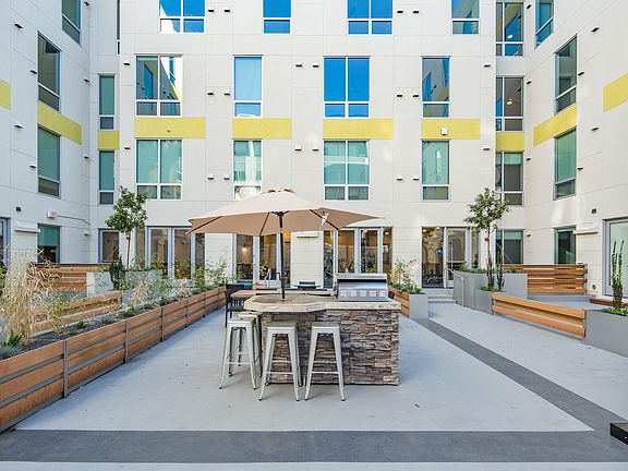 - Exterior features: 9-Foot Ceilings or Taller, Barbecue, Bicycle storage, Certified Cal-Green Modular Building, Close to Capitol Park, Complimentary Starbucks Coffee Machine, Energy Star Stainless Steel Appliances, Ground Floor Retailers, High-speed Internet Ready, On-Site Maintenance, Online Rent Payment, Oversized Windows, Package Receiving, Pet-friendly, Plush Carpeted Floors, Quartz Countertops and Subway Tile Backsplash, Recessed Lighting, Rentable EV Charging Parking Spaces, Under-Mount Sink and Goose Neck Faucet, View Type: Downtown Sacramento Views in Select Apartments, White and Slate-Colored Cabinetry with Modern Brushed Nickel Hardware