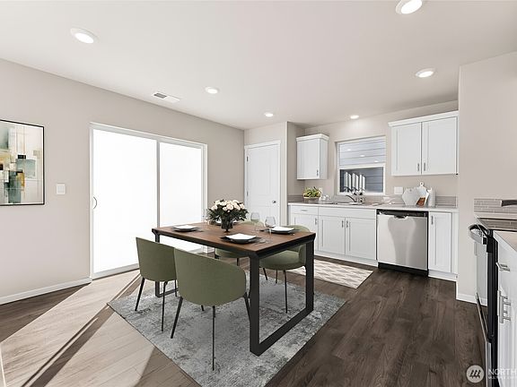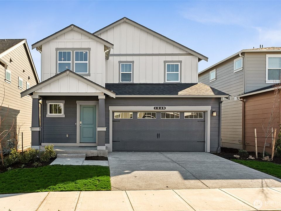 Classic white with black trim and red door exterior. Backs to open space and mature trees and across from park! D. R. Horton Stetson Heights in Port Orchard! The NEW BRISTOL PLAN! 3 bedrooms, 2.25 bath with the luxury of a new home. Entertain easily w/ your kitchen, dining and living space all open together. Enjoy the open concept living, lots of storage and large bright windows. Upstairs utility room w/ all 3 bedrooms. Private primary suite boasts a walk-in shower with double sinks and walk-in closet. A/C and smart home features included! Buyers must register their Broker on or before first visit, including open houses. May Completion.