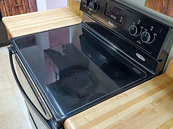 Modern kitchenElectric rangeExhaust hoodAssigned and guest parkingGarbage disposal