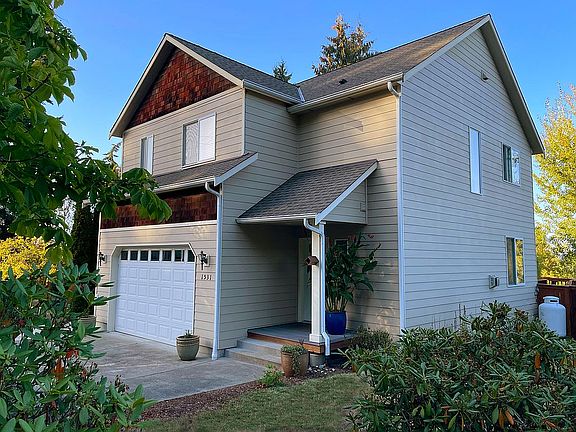 This home, built in 2007, features an open floor plan, 9-foot ceilings, and numerous custom features. The first floor includes a tiled entry, bamboo flooring, a pantry, many storage options, a modern kitchen, a large island/prep space, and a gas fireplace. Included new stainless steel appliances: a Bosch dishwasher, a French-door refrigerator, and a microwave. Step through the slider onto a durable, low-maintenance, composite deck that spans the back of the home. It overlooks the fully landscaped and fenced backyard. The bedrooms and laundry room are upstairs. Two bedrooms share a Jack-and-Jill bath with double sinks. The master offers a walk-in closet with a private bath. The house is located across the street from Lincoln Park. The entrance to the Olympic National Park, the waterfront, and downtown Port Angeles are just minutes away.