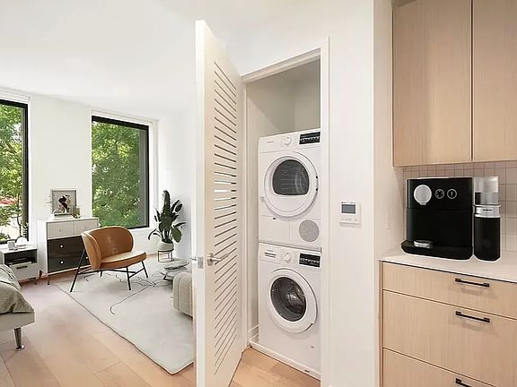 **With interiors by Alchemy Studio, THE 88 offers residents a boutique building atmosphere with designer homes envisioned to bring tranquility to everyday life. Studio, one-bedroom, one-bedroom with home office, and two-bedroom rental residences boast expansive floorplans, with picturesque views over the development's extraordinary Infinity Garden or the lush tree-lined 88th Avenue. Custom floor-to-ceiling windows ensure that interiors are bathed in natural light to let the outside in. Chef-quality kitchens meticulously finished with neutral white oak cabinetry, white quartz stone countertops, and a full suite of premium-quality Frigidaire appliances are as practical for preparing holiday feasts as they are for arranging Sunday brunch. Bathrooms are designed with a hotel spa-inspired contemporary ambience with natural stone custom vanities and standing glass showers in several homes. Select residences also offer exclusive private rooftop terraces that provide a unique perspective of the Queens streetscapes, the hillsides of Jamaica and historic Rufus King Park.**