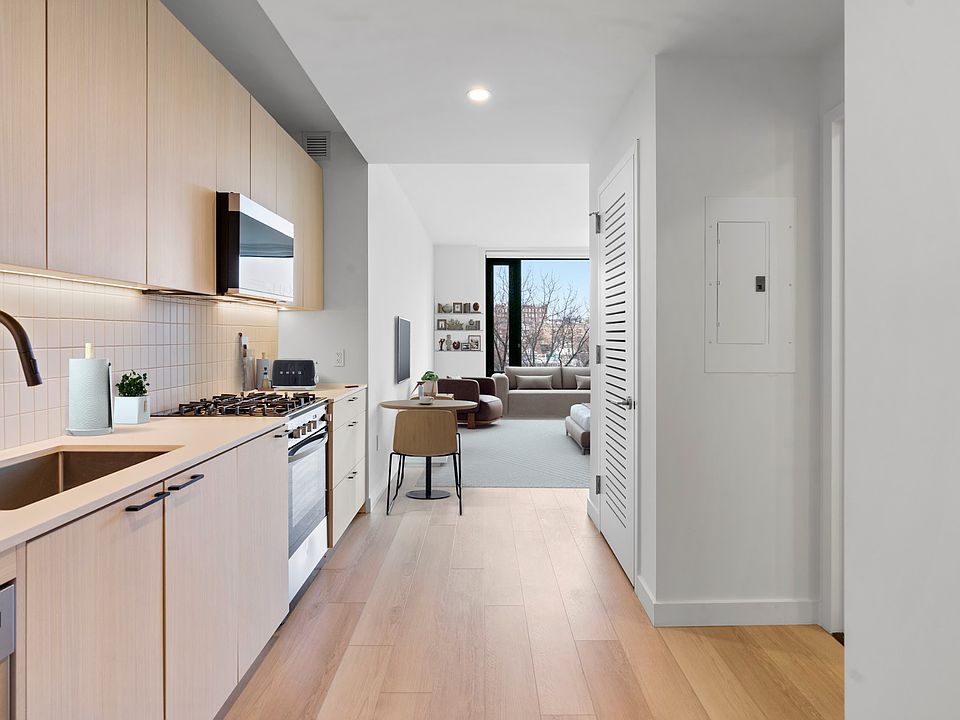 **With interiors by Alchemy Studio, THE 88 offers residents a boutique building atmosphere with designer homes envisioned to bring tranquility to everyday life. Studio, one-bedroom, one-bedroom with home office, and two-bedroom rental residences boast expansive floorplans, with picturesque views over the development's extraordinary Infinity Garden or the lush tree-lined 88th Avenue. Custom floor-to-ceiling windows ensure that interiors are bathed in natural light to let the outside in. Chef-quality kitchens meticulously finished with neutral white oak cabinetry, white quartz stone countertops, and a full suite of premium-quality Frigidaire appliances are as practical for preparing holiday feasts as they are for arranging Sunday brunch. Bathrooms are designed with a hotel spa-inspired contemporary ambience with natural stone custom vanities and standing glass showers in several homes. Select residences also offer exclusive private rooftop terraces that provide a unique perspective of the Queens streetscapes, the hillsides of Jamaica and historic Rufus King Park.**
