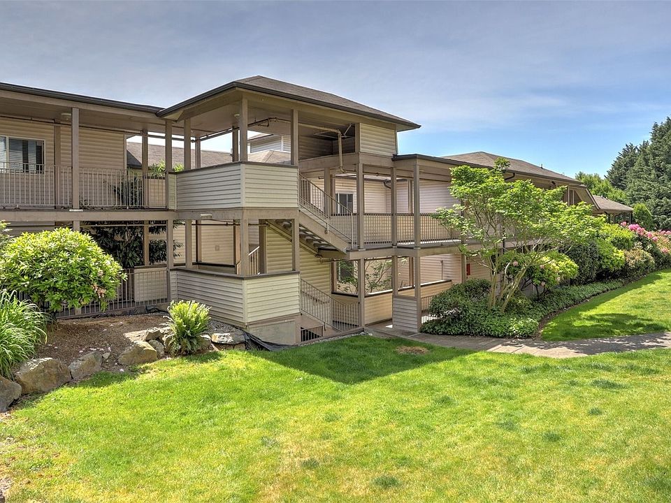Welcome to The Peaks! This darling condo situated on the 2nd floor adorns an extended balcony overlooking tree lined views. Enjoy peace of mind w/2 covered & secured parking spots & lobby entry. Enter the unit to beautiful laminate floors & plenty of storage! Living rm is open to kitchen w/bfast bar seating & direct access to the balcony. Kitchen offers plenty of cabinet & counter space, rm for dining table & window for natural light. Enjoy 2 bedrooms, one currently set up as an office w/full guest bath across the hall. Primary suite is spacious & features 3 closets, 3/4 bath en suite & direct access to the balcony as well. Conveniently located near freeways w/easy access to Seattle, Bellevue, SeaTac airport and local shopping & dining.