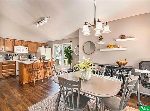 Spacious living room with abundant natural light, vaulted ceilings, and an inviting fireplace. Dining area with open kitchen and island. Large fenced backyard with a patio and deck ideal for entertaining - no neighbors behind! Primary bedroom complete with a private en-suite bathroom with a brand-new skylight and generous walk-in closet. Two additional bedrooms and a second full bathroom provide flexibility for a growing family or a home office setup. Washer and dryer easily accessible. Versatile finished lower level that can be transformed into a cozy family room, man-cave, home gym or media center. Additional large unfinished storage space with shelving. Close to great shopping, West Papio Trail, parks and amazing restaurants - all less than 5 minutes away. Get on Dodge Street in under 2 minutes! Don't wait to set up a showing today! Contact for more flexible showing times than what is listed. *Furniture not included*