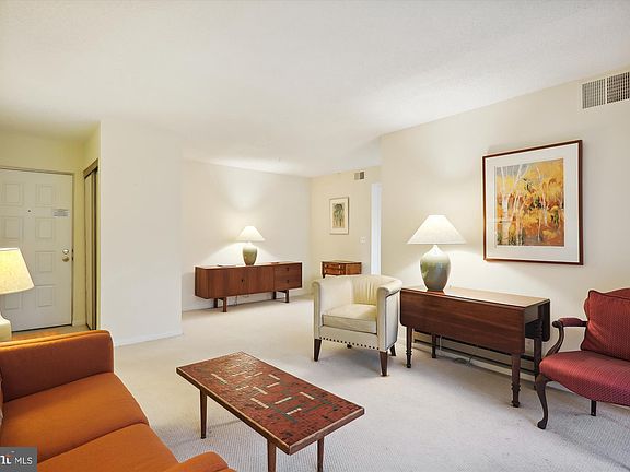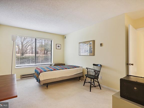 55+ community. 2 bedroom 2 bath, 1043 sq ft. First floor location with views on back side of building----grass lawn and trees. Galley style kitchen opening to table space area. Electric included in condo fee. Nice Extra Feature----glass enclosed patio is great area to watch animals and birds passing by. Owner was using the larger bedroom as a guest room, library, work area. That bedroom has full bath & walk in closet. Extra storage cage in private locked room. Leisure World has indoor & outdoor pools, professional 18 hole golf course, technology center (lots of members to help you learn ), wood shop, garden area to rent space (grow herbs , vegetables & flowers).