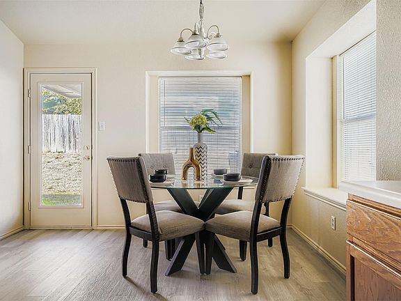 This single-story home features a bright and open floor plan with multiple archways and abundant natural light, including a spacious living room and a dedicated dining area. The functional kitchen is equipped with a gas range and wood cabinetry. The primary suite includes a private bath with a garden tub and separate shower, and a large laundry room offers storage shelving for added convenience. A covered patio overlooks the private fenced backyard, ideal for outdoor enjoyment with your kids or pets. Located in a quiet residential Pflugerville neighborhood, the home is just minutes from Northeast Metropolitan Park, Pfluger Park, and everyday essentials like H-E-B, with quick access to major roads for an easy commute. With fresh neutral interior paint and newer flooring throughout, this move-in ready home offers excellent value.