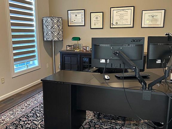 Welcome to 15312 Sir Edwards Drive, a beautifully updated end-unit home nestled in a quiet cul-de-sac within the sought-after Balmoral community. This spacious residence features four bedrooms, three full bathrooms, and one half bathroom, offering comfort and flexibility for modern living. Inside, you'll find brand new flooring throughout, a dedicated theater room for immersive entertainment, and a stylish floating fireplace that anchors the living room with warmth and architectural flair. The home also includes a custom bar for effortless entertaining, a private office ideal for remote work, and ceiling fans in every bedroom for year-round comfort. The expansive primary suite boasts a versatile sitting room—perfect for a workout space, reading nook, or personal retreat. Step outside to enjoy two distinct patios: one off the kitchen designed for grilling and casual dining, and a second covered patio ideal for relaxing in any weather. The professionally landscaped yard adds curb appeal and serenity to the property. As a Balmoral resident, you'll enjoy the community amenities which include a pool, clubhouse, parks, scenic trails. Located just minutes from Bowie’s top shopping, dining, and commuter routes, this home delivers convenience without compromise. Don't miss your chance to call this amazing property home -- schedule your tour today!