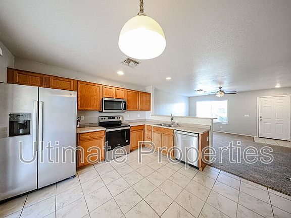 **Brand New Carpet** This is a great 3 bedroom + 2 bathroom home in Surprise. Kitchen features refrigerator, range and dishwasher. Fans and blinds throughout. Master suite features walk in closet. Large backyard with covered patio and easy to maintain landscaping. 2 car garage Pet Details: All Pets Allowed