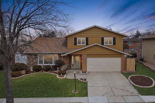 MOVE IN READY FORESTVIEW HILLS SPLIT LEVEL- This beautiful 4 BR 2.5 bath forester features gleaming hardwood floors, TWO fireplaces, updated kitchen, master suite & partially finished sub basement! Just south of the forest preserve & minutes from shopping & restaurants, this well maintained split level has BRAND NEW carpeting in the family room w/ exposed beams, custom built-ins & a cozy stone fireplace. Sliding doors lead to a paver patio, fenced in yard, above ground pool, fire pit & shed! Modern eat-in kitchen w/ SS appliances & granite counters. Spacious master suite w/ marble counters, custom tile shower & Jack & Jill closet. Convenient first floor laundry! Basement offers partially finished Rec Room/Media room w/ electric fireplace, bonus craft room & crawl for additional storage. TEAR OFF ROOF gutters/fascia 6 yrs ago, NEW windows. This home is LARGER than it appears! Spread out in a great neighborhood in a fantastic location!