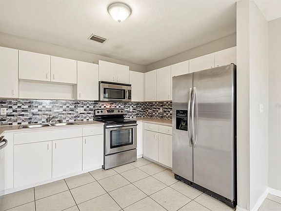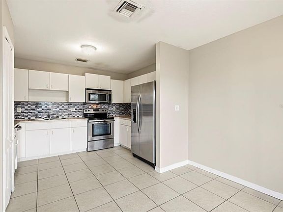 One or more photo(s) has been virtually staged. Inviting single-story home offering a spacious and functional layout with four bedrooms and two bathrooms. The welcoming entry features double front doors leading into a bright living area accented by a bay window. The kitchen is equipped with stainless steel appliances, a convenient pantry, and plenty of counter space. The primary suite includes a separate tub and shower for added comfort. Enjoy outdoor living on the screened-in porch overlooking the fenced backyard, perfect for relaxing or entertaining. A two-car garage completes this well-designed home.