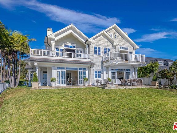 East Coast Traditional Cape on the coveted Via de La Paz bluffs with unobstructive ocean views from Malibu to Catalina Island on a corner lot. Cooks kitchen w/SS appliances, center island w/breakfast bar, built in work desk & breakfast area. The kitchen flows into a great room w/FP, built in cabinetry & French doors to the front patio w/firepit. The dining room & living room w/coffered ceilings & FP are perfect for large gatherings. Upstairs Master bedroom includes an ensuite spa bath, FP, dual walk in closets, adjoining office & French doors that open to a large private balcony to enjoy the sunsets. The second bedroom has French doors that open to a private balcony & shares a bathroom with the third bedroom. Laundry room upstairs. The fourth bedroom with ensuite bath, powder room & mud room complete the first floor. Finished garage with powder room & an outside shower. Hardwood floors throughout the house & freshly painted inside/outside. Close to the Pacific Palisades Village.