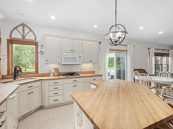 Welcome to this beautifully maintained two-story brick home, perfectly set on 3.02 acres with its very own stocked pond. From the moment you step inside, you’ll feel the warmth and thoughtful design throughout. The kitchen immediately captures your attention with its stunning wood countertops, tall cabinetry offering ample storage, and a picturesque view of the backyard. The open layout seamlessly connects the kitchen, dining area, and family room, while still providing a formal living room and sitting room—an ideal balance of open-concept living and cozy, traditional spaces. Convenience meets functionality with the attached three-stall garage that opens directly into a spacious mudroom and laundry area. Upstairs, retreat to the expansive primary suite featuring a private ensuite bath and a generous walk-in closet. Three additional large bedrooms and a full bathroom provide comfort and space for family and guests alike. The daylight basement expands your living options with a large recreation area, full bathroom, and a flexible bonus room with a closet—perfect for a home office, gym, or non-conforming bedroom.Natural light floods every level of the home, creating an inviting atmosphere and allowing you to enjoy serene views of the surrounding nature from dawn to dusk. Step outside onto the composite deck, sip your morning coffee beneath the pergola, and take in the peaceful beauty of your private pond. If you’ve been searching for your own slice of quiet and nature without sacrificing comfort and style, this is the home for you. Don’t miss the chance to make it yours!