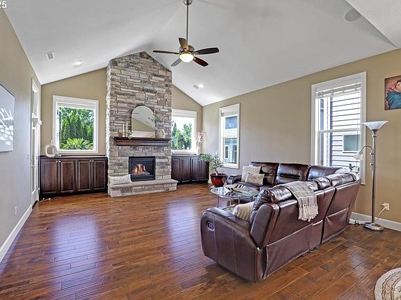 Located in one of Bethany’s most desirable neighborhoods, this 4-bedroom, 3.5-bath home offers a rare main-floor primary suite and 3200 square feet of thoughtfully designed open concept living space. The vaulted living room features a striking 2-story fireplace and built-ins. The kitchen features stainless steel KitchenAid appliances, granite countertops, a pantry, and gorgeous engineered hardwoods that run throughout the main floor. Most of the interior doors also have transom windows. The primary ensuite is located on the main level and overlooks the lush landscaped back yard. Also located on the main is a perfect den-office with soaring high ceilings.Upstairs, you'll find three more bedrooms, including a junior ensuite with a walk-in closet plus an absolutely massive bonus room—perfect as a media room, playroom, or whatever your heart desires. Step outside to a level, private backyard that feels like your own retreat, complete with palm trees, rose bushes, a large lawn and a covered patio to relax or entertain. This flexible layout works for multi-generational living, hosting out-of-town guests, or simply spreading out and enjoying the space.