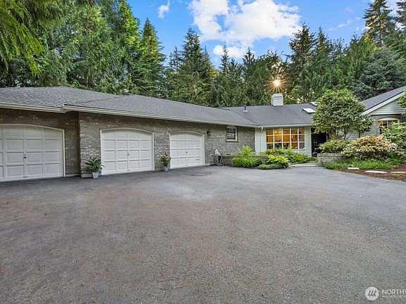 Welcome to this beautifully updated rambler nestled on a quiet cul-de-sac in the sought after Eastbrook neighborhood of Woodinville. This expansive one-level home offers the perfect blend of modern updates & timeless comfort w/new Acacia hardwood floors throughout & fresh ext paint. Step into the new gourmet kitchen featuring stunning quartzite countertops, Thermador cooktop, double oven, & wine fridge—perfect for everyday luxury. 4 beds & 2.5 baths - the primary suite is a true retreat! The spa-like en-suite bath has a soaking tub, rain shower, walk-in closet & dressing room. Additional highlights include large 3-car garage, second driveway w/gated RV pad, fire pit area, greenhouse, gazebo, close to Tolt trails & Northshore Schs.