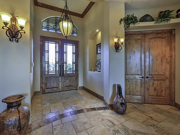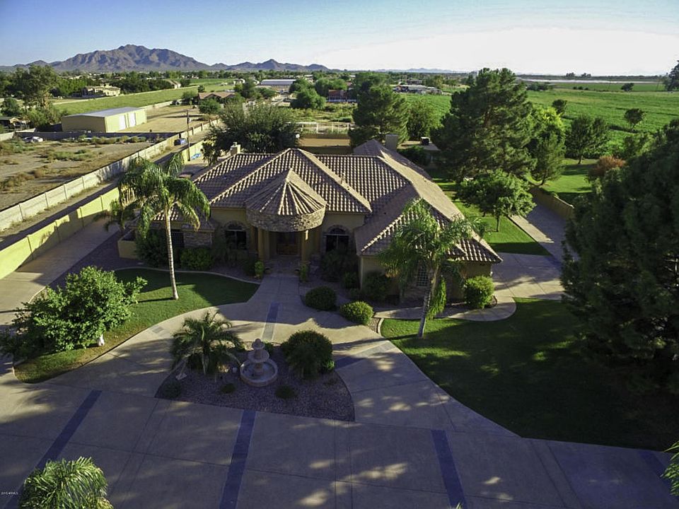 Now under $800K! This fantastic 4 bed, 3.5 bath, 5-car garage estate encompasses all there is to love about a custom home! Enter 1.1 acres of land through private gates and approach the double 9-foot knotty alder entrance doors on a circular driveway enhanced by mature Palm trees. Upon entering, the formal living room boasts massive picture windows highlighting the covered patio, pool, and yard. You will immediately be struck by Italian Terrazzo tile intertwined w/ imported wood flooring, and 7" custom baseboards and crown molding throughout. Gourmet kitchen w/ gas cooktop, Stainless appliances - includes 3 ovens and commercial grade fridge/freezer. 1500+ SF Multiuse Storage shed on back part of the lot. New A/C, New Pool heater and pump, Security monitors, and much more! NO HOA!!