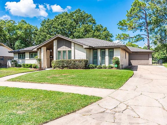 Wow is a MUST SEE! Beautiful home on the upcoming "NEW EXPLORATION GREEN"(visit their website for more information). WITH AMAZING VIEWS WITH LARGE TREES IN THE BACK OF THE HOUSE. THE BACKYARD OVERSEES THE GREENBELT WITH SECLUDED BACK YARD AND VERY PRIVATE. 4 BEDROOMS/2 BATHROOMS WITH A DETACHED 2 CARE GARAGE IN THE HEART OF CLEARLAKE. SPACIOUS FAMILY ROOM WITH NATURAL LIGHTING. HOME IS UPGRADED WITH PLANTATION SHUTTERS IN ALL ROOMS, KITCHEN HAS TILE FLOORING, STAINLESS STEEL DOUBLE OVENS, GRANITE TILE COUNTER TOPS AND BUILD IN GLASS COOK TOP. SPACIOUS DEN WITH HIGH VAULTED CEILINGS, WOOD BEAM ACCENTS, WOOD FLOORING, AND WOOD BURNING FIRPLACE. PRIMARY BEDROOM GREAT SIZE WITH 2 VANITIES WITH WALK IN CLOSET. SEC. BEDROOMS ARE SPACIOUS WITH A FULL SIZED BATH. NICE COVERED BACK PATIO. EXEMPLARY CCISD SCHOOLS AND ZONED TO CLEAR LAKE HIGH SCHOOL. PET FRIENDLY!! SEE IT TO BELIEVE IT. THIS HOME HAS BEEN METICULOUSLY MAINTAINED.SCHEDULE SHOWING TODAY