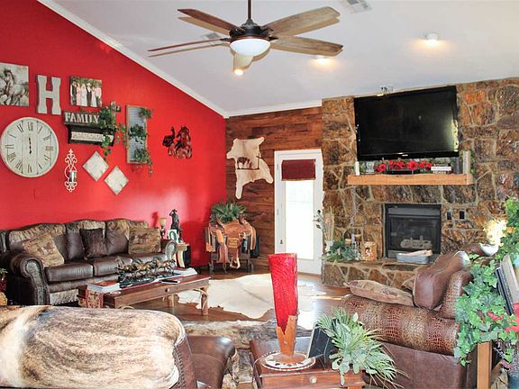 One of a kind turn key ranch in the Heart of Oklahoma horse country! Located in Overbrook, OK this picturesque 68+/- acres of improved property with easy access to I-35 and within a two-hour drive from the DFW metro or Oklahoma City area. Beautiful gated entrance with a tree lined driveway. The primary residence has unique rock gardens, wrap around concrete sidewalks and large front patio with cedar accents. Built in 1998 with a remodel done in 2017, this brick home boasts an inviting living room with a gas fireplace and beautiful engineered hardwood floors throughout. The large master bedroom with a fireplace and completely remodeled master bath features a tile shower, wood cabinets/vanities and a storm shelter in the walk-in closet. The large open concept kitchen offers newer stainless steel appliances, breakfast island bar and a walk-in pantry. There is a cozy nook off the kitchen perfect for a sun room or play area. The utility room accedes a guest room and ¾ bath that will make your guests always feel welcome. Amenities within a short walk from the main home include: 1) a new custom designed 1 bedroom barn apartment with a kitchen/living area, and a bathroom with tiled shower, 2) a heated 11-stall horse barn with feeders, feed/tack room combo and a large wash area with breeding stocks, 3) a concrete floored shop with 4 large overhead doors and electricity, 4) an outside 160x300 arena with roping boxes, return alley, Chute Help and announcer's stand, 5) a covered round pen and outside large working pen, 6) well water and rural water, 7) Ritchie automatic waterers to the multiple turnouts, 8) electric horse walker. This kind of place is becoming more and more difficult to find. It has an abundance of privacy and all the amenities, plus it is ideally located and close to several first-class horse properties.