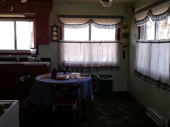New paint carpet, vinyl and flooring through out. Cozy three bedroom one bath home on 2.6 city lots. One of the bedrooms has been converted to a utility room. Detached two stall garage with work space. New Steel roof on home and garage, newer windows. Wood stove. Hard wood floors beneath carpet. Furnishings include washer/dryer, stove, refrigerator, separate freezer, air/conditioner, lawn mower, snow blower, ladders, wood stove and a large range of garden and lawn tools including hoses as well as a gas barbecue.