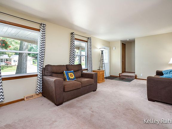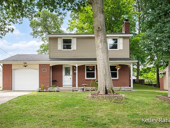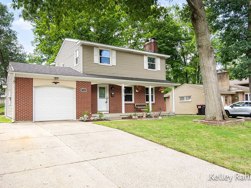 Updated and move-in ready! Cul-de-sac location! Three bedroom, 1.5 bath with attached garage. Great front porch. Living room with gas fireplace. Updated kitchen with dining area and slider to deck. Upstairs are 3 bedrooms and a full bath. Plenty of closet space. Primary bedroom has double closets. Finished basement with family room and 2nd fireplace, laundry, and storage. One stall attached garage with covered patio off the back. Recent updates include flooring, drywall, and lights in the basement family room (2020); tile floor, countertop, mirror, and light in the full bath; central air (2017), water heater (2024), garage door opener, added attic insulation, storm door, and thermostat. Convenient location close to shopping, schools, parks, and expressway!