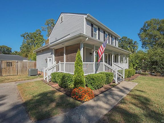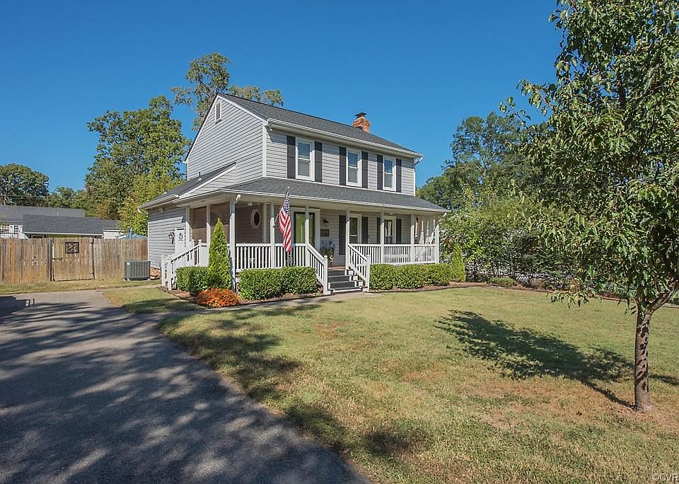 This home checks off all of the boxes. Beautiful 2 story with a front wrap around porch. Wood floors from the foyer through the kitchen and eating area. The kitchen has been remodeled featuring ss appliances (refrigerator stays), gorgeous granite countertops, island, subway tile backsplash and a pantry. The family room is sunken, has 2 ceiling fans and has a whitewashed brick raised hearth FP. The sliding glass door (with integrated blinds) leads to the deck that over looks the in-ground pool (hurry up and view this home while the pool is open). There is a remodeled full bath downstairs. Upstairs is 3 bedrooms and a remodeled bath. The master bedroom has 2 closets with organizers. Plantation blinds thru out the home. The homeowners installed a new Trane heat pump a couple of months ago. The crawl space is conditioned. Shed w/electricity. This is a great home with all the bells and whistles you've been looking for and only 4 blocks away from the new Enon Elementary school. The location is super convenient to Ft. Lee, RIC, downtown Richmond and shopping.
