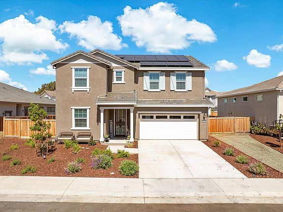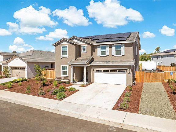 Gorgeous Almost Brand New Two-Story Home Built In 2024 With Owned Solar, Gorgeous Landscaping, RV AND Boat Parking! This Spacious Home Features 4 Bedrooms + Loft, 3 Full Bathrooms, With 1 Full Bedroom And Bathroom Downstairs, A Gourmet Kitchen With Quartz Countertops, White Cabinetry, Stainless Steel Appliances Including Built-In 5 Burner Gas Cooktop And Hood Over Range, Large Walk-In Pantry And Huge Island With Sink And Breakfast Bar. The Primary Bedroom Boasts An Extensive Walk-Through Closet And Primary Bathroom With Dual Sink Vanity, Glass Enclosed Shower And Soaking Tub. Other Property Highlights Include Recessed Lighting, Window Treatments, Luxury Vinyl Flooring, Plush Carpet, Neutral Paint, Upstairs Laundry Room And Owned Solar. Meticulously Maintained Landscaping, California Room, Tranquil Waterfall, Lawn Areas, Paver Patio And Walkways And Separate RV/Boat Parking. This Light And Bright Home Is Sure To Delight!