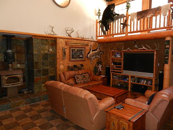 Mountain escape only 10 minutes from town. Remodeled from top to bottom in 2005. Huge great room with wood burning fireplace. Large kitchen with lots of storage and wonderful entertaining area. Master suite with gas stove, 5-piece bathroom with jetted tub and walk-in closet. Man cave -AKA- massive garage with workshop. Also a detached garage/workshop behind the home! This one has it all!