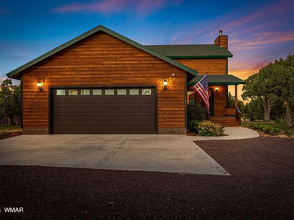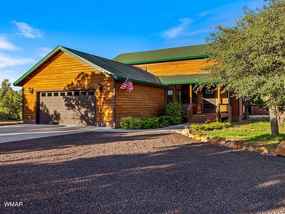 Welcome to your furnished High Country Pines mountain retreat—a perfect blend of rustic charm and modern comfort. This 2,237 sq. ft. chalet-style home offers 3 bedrooms, 3.5 baths, and a versatile open loft with sweeping views, closet, and private full bath—ideal as an office or bedroom suite. The great room concept is highlighted by hardwood floors, ceramic tile, a soaring rock-accented wood-burning fireplace, and a vaulted tongue-and-groove ceiling with rich wood accents throughout. The chef's kitchen features upgraded birch self-close cabinets, Kitchenaid appliances, and granite countertops. Two split master suites on the main level provide privacy and convenience. Handcrafted peel pole log railings and staircase add mountain character, while energy-efficient features such as etc.... foam insulation, low-maintenance smart siding, tankless water heater, and composite decking ensure lasting value. Relax on the covered front or back deck and take in the fresh mountain air. Complete with an oversized 2-car garage, this home combines craftsmanship, quality, and locationyour perfect getaway or full-time residence in High Country Pines!