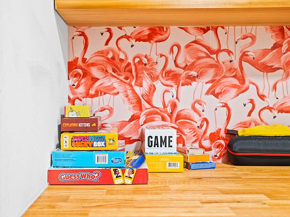 Foosball tableVibrant retro-chic atmosphereOutdoor showerComfort with stylePac-man arcadeHot tubFully stocked kitchen