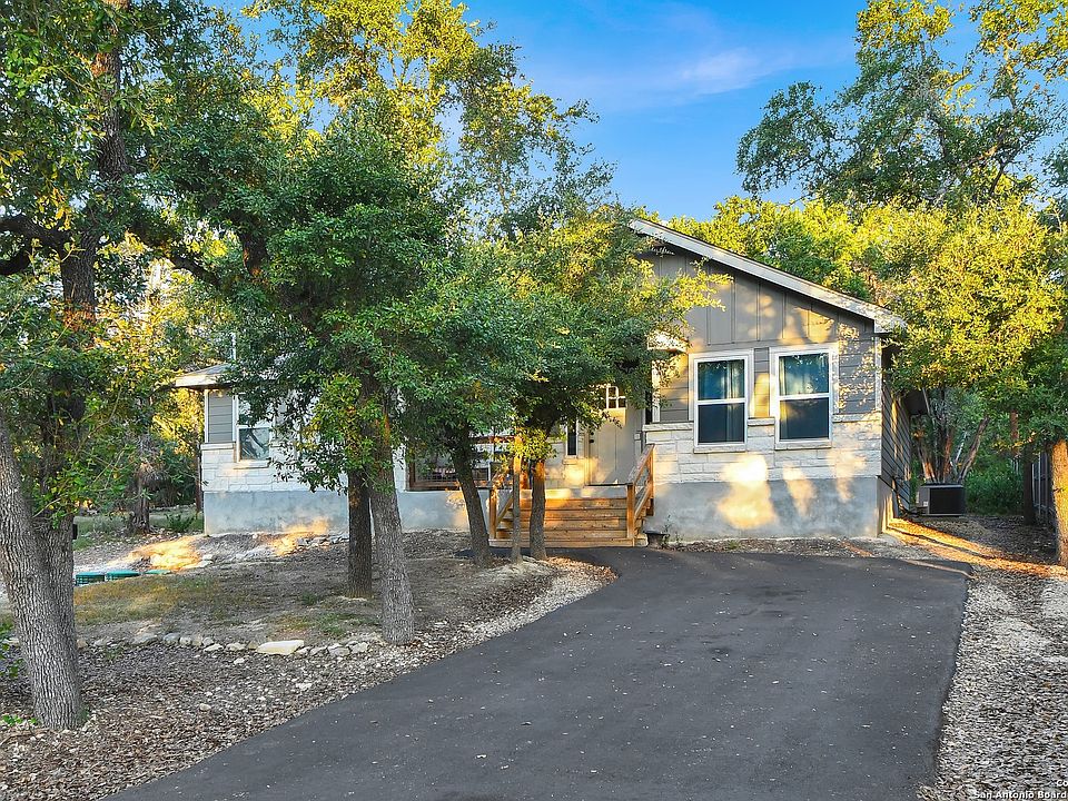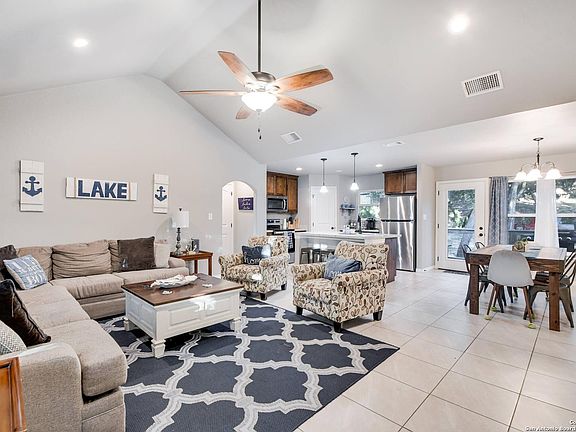 Fully furnished highly profitable Short Term Rental for sale! This gorgeous home sits on a small hill with country views nestled in the middle of Canyon Lake Forest, completely surrounded by Live Oak and Cedar trees. Purchase it as an income producing short term rental with over 150 5-star reviews or as a fully furnished home to live in! Inside you'll find high ceilings, blazing fast internet, an island kitchen with high end 42" solid hardwood cabinets and windows that allow you to immerse yourself in nature. 2 guest bedrooms share a full bathroom and the master bedroom has 2 closets plus dual vanities in the master bathroom. Be prepared to make friends with the white tailed deer that roam the neighborhood as they often come right up to the back deck to say hello every morning! The home feels like it sits on over 2 acres because of the way the neighbors have preserved their front and back yards--completely devoid of buildings, leaving nothing but trees, native flowers and open space. Comal Park is a 5 minute walk and so is Boat Ramp #5 which is a great place to put in your kayaks and stand up paddle boards. The community pool, playground and tennis courts are also less than 5 minutes away walking distance. This is truly a remarkable property, which comes fully furnished with an acceptable offer.