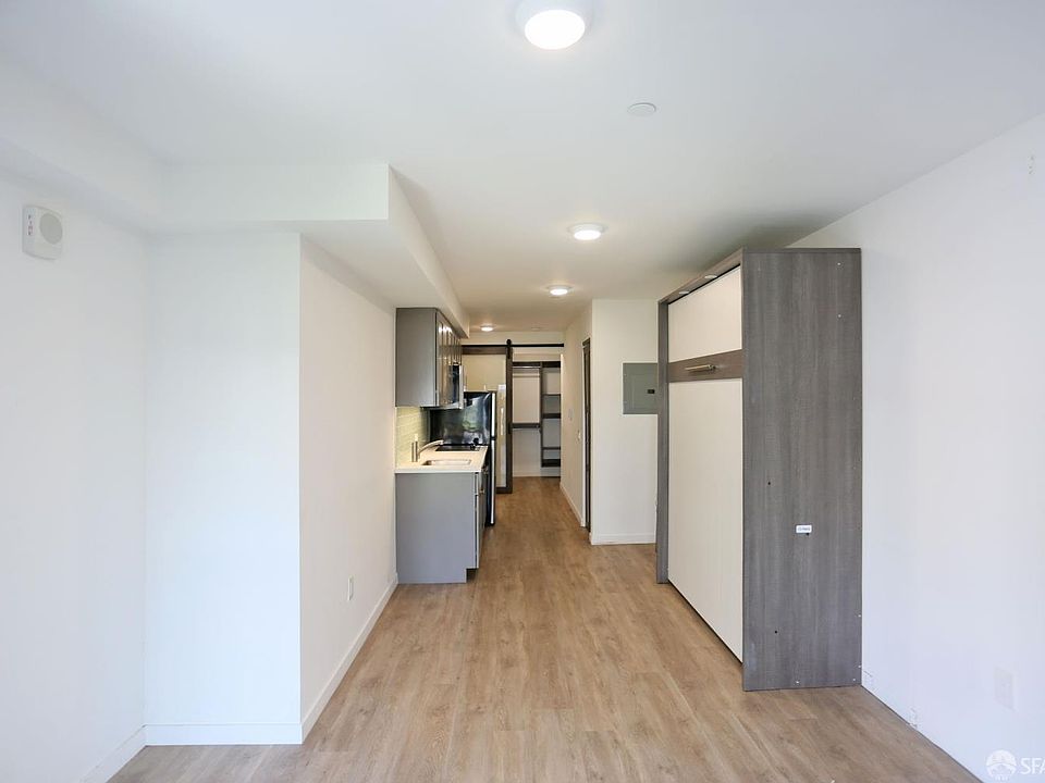 This sleek second-floor studio blends smart design with modern convenience in the heart of SoMa. Bright and airy, hardwood floors, a built-in Murphy bed, and a cozy living area. Contemporary kitchen and in unit washer and dryer adds ease. The walk-in closet has built-in shelving. The bathroom is also complete with a shower-over-tub. Set in a secure contemporary building on Howard Street, residents enjoy premium amenities: a rooftop deck with sweeping views of downtown, Market Street, and SoMa; a fire pit for evening gatherings; and a sixth-floor terrace with a stainless steel BBQ and sink. The building also offers elevator access, bicycle parking, and unbeatable transit access. With a Walk Score of 98, Transit Score of 100, and Bike Score of 99, you're perfectly positioned to enjoy everything San Francisco has to offer.
