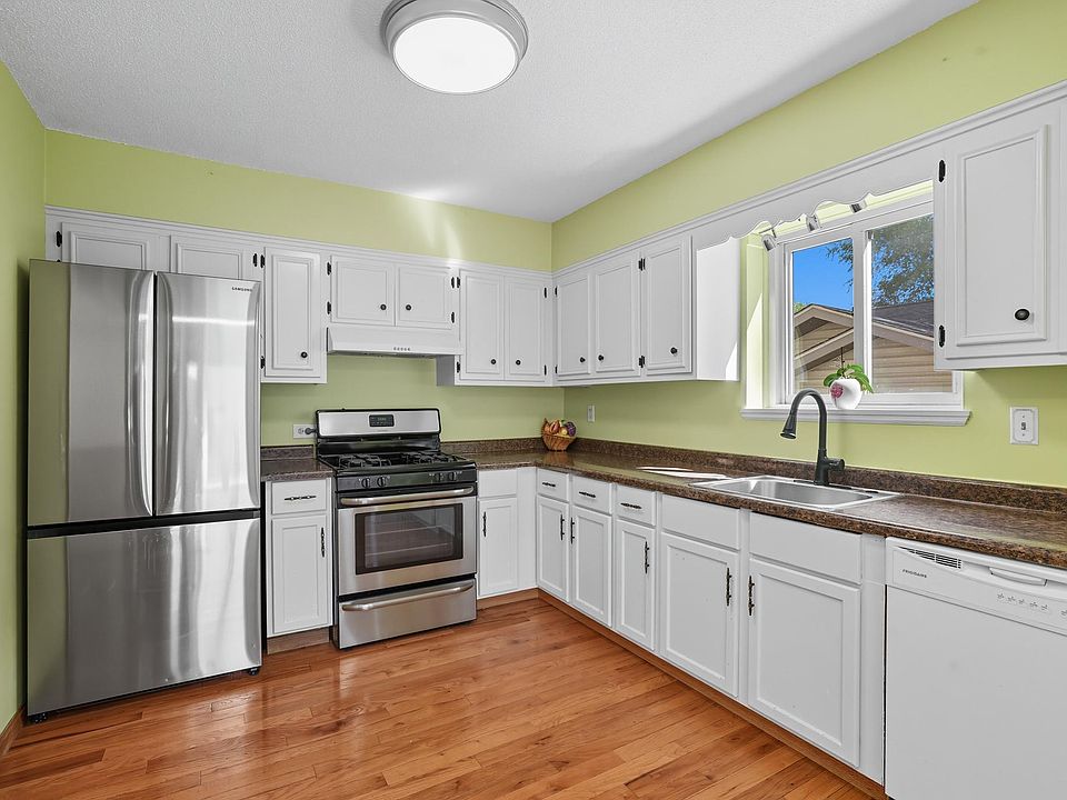 Stunning twin home in a sought-after Saint Paul location! This move-in ready property offers a new roof, newer furnace & AC, and freshly painted interiors. Enjoy the warmth of gleaming hardwood floors in the kitchen and living room. The bright, freshly painted kitchen features ample cabinet space, while the spacious living room welcomes abundant natural light. A newer glass door opens to a recently painted deck—perfect for entertaining. The basement has been updated with new flooring and includes a newer washer and dryer. Relax on the private patio beneath the deck—your own outdoor oasis. Conveniently located near bus stops, shopping, and local amenities. No HOA fees! Don’t miss this well-maintained home!