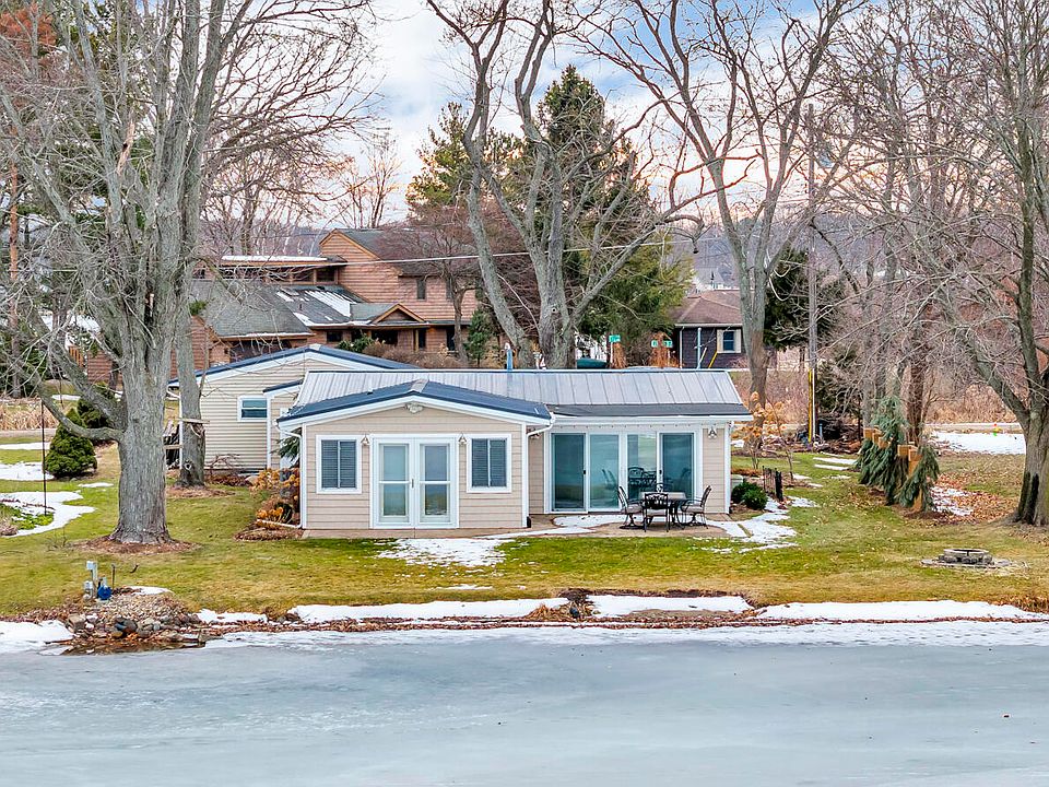 DREAM LAKEFRONT RETREAT WITH SANDY BOTTOMS & CARIBBEAN BLUE WATERS WELCOME YOU TO THIS COMPLETELY REMODELED HOME ON HIGHLY SOUGHT AFTER ROUND LAKE! Lush, main lake LEVEL LOT w/60 ft of frontage. Enjoy the natural, spring fed & all-sport waters. Stunning views & natural daylight fill this beautiful 3BDRM/2BA home. Completely remodeled w/attention to detail-everything from the roof, HVAC (17), whole house generator (23), windows, siding, kitchen, baths, insulation, drywall, electric, plumbing, flooring (15) have been thoughtfully upgraded. Spacious lakeside ensuite provides a peaceful sanctuary w/breathtaking views. Stamped & colored patio offers the perfect space to relax or entertain. Walking trails are just around the corner & golf course nearby for those looking to tee off. Must see!