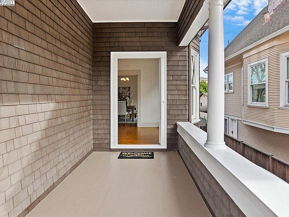 Discover the timeless elegance of 1532 Morton Street, a captivating Dutch-colonial treasure nestled in the heart of Alameda. Making its debut on the market for the 1st time in nearly a century, this brown-shingled home built in 1901 has been beautifully maintained. The distinctive gambrel roof crowns this 2,012-square-foot residence, set on a generous 6,000-sq foot lot surrounded by other historic homes. Upon entering, you are greeted by a spacious and inviting entryway with a coffered ceiling, leading to an expansive front sitting room. Here, tall, original diamond-paned windows and a coved ceiling create an elegant light-filled ambiance. The dining room,w/ cozy fireplace, is perfect for hosting intimate gatherings. Newly refinished wood floors guide you through both levels, leading to a kitchen area ripe for a functional and stylish remodel. Upstairs are 3 spacious, light-filled bedrooms w/ coved ceilings and newly remodeled bathroom. Below is a full basement offering versatile space for an office, play area, laundry, storage, and more. The newly painted interior and front porch enhance the home's allure. A roomy back porch overlooks a large fenced yard w/ mature fruit trees. A long driveway allows ample parking. Located near shopping, dining and buses to SF, Oakland & Bart.