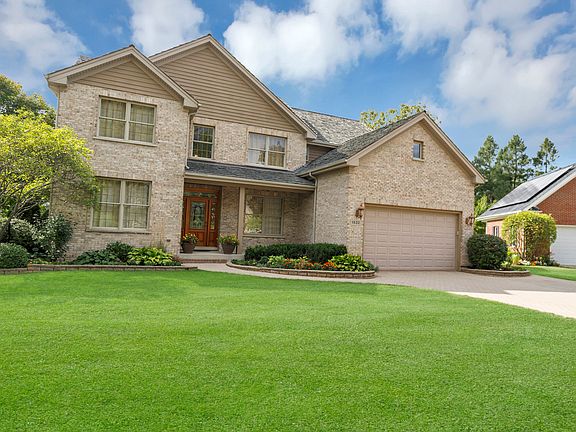 Stunning 4-Bedroom Custom Home in Palatine-Perfect for a Close-Knit Family! Move into this beautifully crafted home featuring an all-brick exterior, solid core doors, and abundant natural light. The open floor plan, with its vaulted ceilings and gorgeous oak hardwood floors, creates a warm, inviting space perfect for family living. The heart of the home is the gourmet kitchen which features 42 inch custom cabinets, marble countertops, Stainless steel appliances, a spacious island with a breakfast bar, a butler pantry, and a cozy eat-in area-ideal for family meals and gatherings. The elegant living spaces include a dramatic 2-story fireplace that anchors the family room, making it the perfect place for loved ones to gather. Formal dining and living rooms provide sophisticated spaces for family celebrations. At the same time, the main level includes a dedicated home office, ideal for working from home. Convenient First-Floor Laundry located near the kitchen and the access hall to the garage. Complete with cabinets and a sink, it adds a touch of ease to your daily family routine. Luxurious Master Suit features a huge walk-in closet and a spa-like en-suite with a whirlpool tub, separate shower, and double sinks. The second level includes three generously sized bedrooms and a hall bath with double sinks and marble counters, offering ample comfort and privacy for the entire family. There are a total of four bedrooms on the second level. The Full Basement showcases 9-foot ceilings, a roughed-in fireplace, and a full bathroom. The expansive basement is a blank canvas waiting for your personal touch. Whether you envision a playroom, media center, or additional family living space, the potential is endless. Step outside to the large brick paver patio in a landscaped yard. This space is not just a patio. It offers the potential relaxation, offering a perfect outdoor retreat. Located in a cul-de-sac of custom homes, near shopping, dining, parks, forest preserve hiking and biking trail, the Metra Station, walking distance from Palatine Hills Golf course, and with easy Interstate access. This move-in-ready stunner is the ideal home for a close-knit family looking to create lifelong memories.