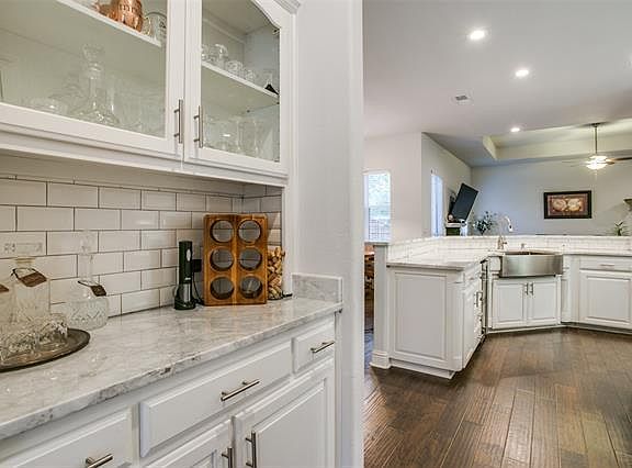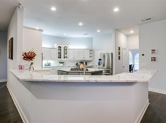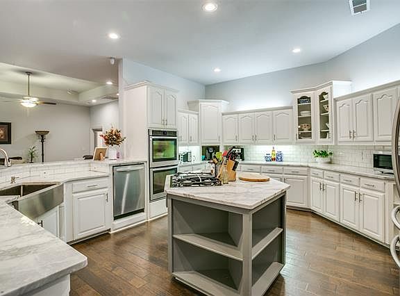 Absolutely exquisite property on a large corner lot in a quiet lake community!Mature trees!Beautifully remodeled,neutral gray paint throughout,wood floors,AMPLE storage,tons of natural light & high ceilings!Kitchen is a true show stopper!Stunning marble counters,subway tile,stainless farm sink,double ovens,wine fridge,gas cook top,walk-in pantry w a tornado shelter,2nd pantry & a butler's pantry!Elegant stone gas fireplaces in living & master!Awesome 165sqft MAN CAVE or flex room!Secret storage room!Huge master closet!Spacious utility room has a sink,cabinets & room for a fridge!Large backyard with stone patio!Texas-OVER-sized garage has 8ft insulated garage doors & built-in cabinets!Community boat ramp & park!