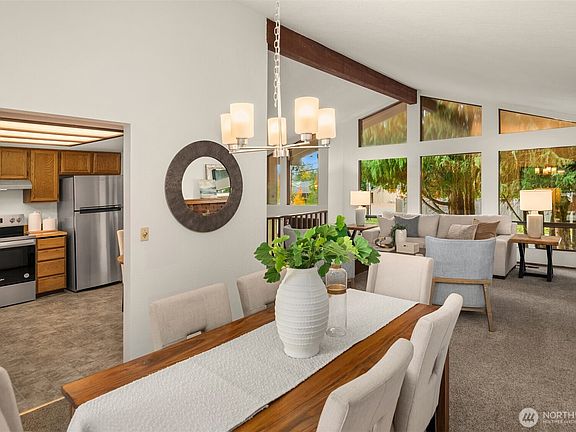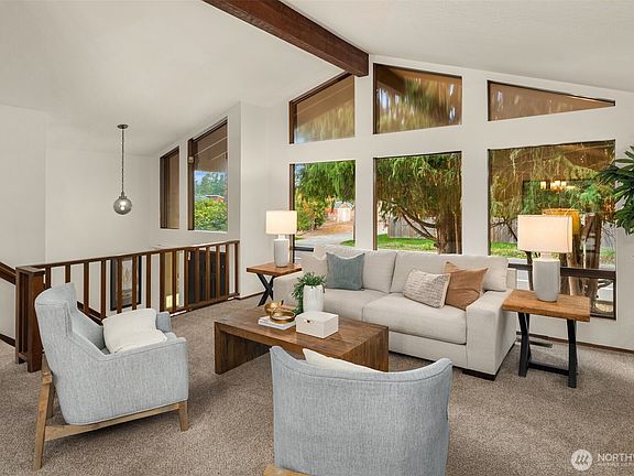 Spacious 3-bed, 2.5-bath split-level home with 1,929 sq ft of stylish updates! Enjoy vaulted ceilings, extra-large windows, and abundant natural light upstairs, plus a second living/rec room with slider access to the fully fenced backyard. Entertain on the large deck and take in the oversized lot. Freshly updated with new carpet, flooring, paint, appliances, lighting, and more—including a stunning master bath with walk-in shower and built-in bench. Cozy up with wood-burning fireplaces on both levels. Minutes to I-5, Mill Creek shopping, groceries, and just 2 blocks from Martha Lake!