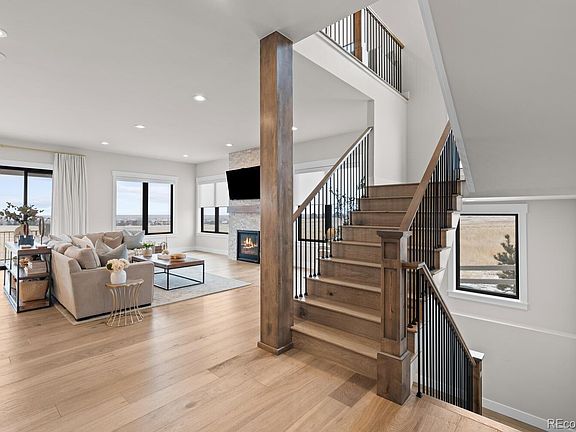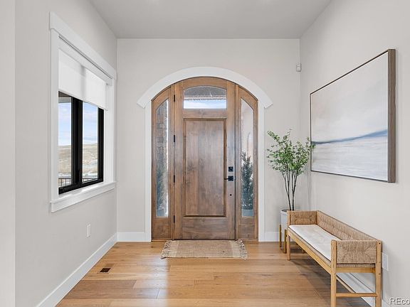 Perched at the top of a coveted cul-de-sac in Anthem Reserve, this semi-custom Copper Homes masterpiece was designed to embrace its exceptional lot—one of the finest in the community. With a $400,000 lot premium, this home backs to protected open space, offering unmatched privacy, breathtaking panoramic views, and direct trail access. Unlike new builds that require patience and additional investment, this home is fully move-in ready—with $300,000 in brand new and exquisite landscaping, custom closet organization, and designer window coverings already complete. Every detail has been thoughtfully upgraded, making this a rare opportunity to step into luxury without the wait. Inside, the thoughtfully designed floor plan blends luxury and function. The gourmet kitchen features a top-tier Thermador appliance package, paneled refrigerator and dishwasher, built-in Liebherr wine fridge, and expansive views. The open-concept great room with gas fireplace is flooded with natural light through black-framed Marvin windows to soak in the vast views. Upstairs, four ensuite bedrooms offer private retreats, including a primary suite with incredibly luxurious bathroom and a custom-designed walk-in closet. A convenient upstairs laundry adds everyday ease. The finished walkout basement—designed with 10’ ceilings—includes a large rec room and stylish kitchenette with a full-size refrigerator, bedroom, flex room, full bathroom and a huge storage bunker under 4-car heated garage ($45,000 upgrade). The outdoor living space is second to none, featuring a covered back deck and brand-new, $300,000 professionally designed backyard. The recently completed landscaping includes an extended patio, Belgard pavers, a Belgard built-in grill island and gas fire pit, a luxury hot tub, and lighted steps leading to scenic open space. A three-rail concrete fence with wire ensures both an open view and dog safety. The views, the lot, the upgrades- someone is about to get lucky with this rare opportunity!