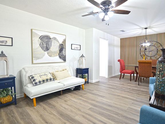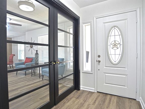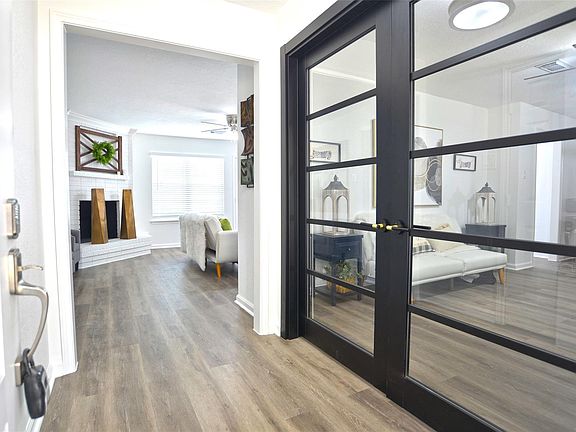 This street is really turning upscale! Live just 5 houses down from a $1+M home! Stunningly updated home in the heart of Clear Lake, overlooking Exploration Green! Step through your own back gate to the running and walking trail! Home features a new roof, new insulated windows, new HVAC, cabinetry, flooring, plumbing & more! 4 bed rooms 2 baths, Office or formal with modern French doors. Dining features decor wall and black and gold accents. The gourmet kitchen has all new cabinetry, quartz countertops and tiled back splash. An island separates the kitchen from the family room over a stainless gas oven with stainless & glass vent hood. Both baths are all updated with tiled showers and new flooring, Luxurious vinyl tile through out except bedrooms. Indoor utility, gas or electric for the dryer and gas water heater. Huge back yard with great views!