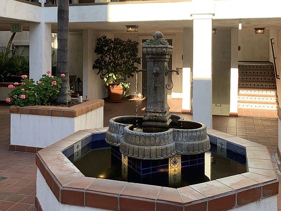 Decorative tile staircaseCourtyard terraceLush tropical landscapingWrap-around covered private patiosMultilevel plantersTons of storageCustom crown molding